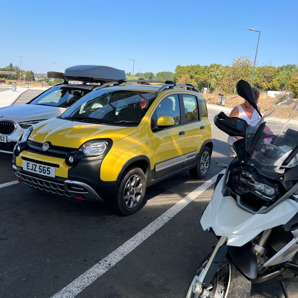 After a brief refuelling stop (both mechanical and human) a little outside Lyon, the final leg of our journey was uneventful… if bendy. Heading into the Alps was an adventure of its own (see below), with many switch backs and view points – needless to say Tom had a great time on the bike, and Dougal the Panda Cross was in his element.