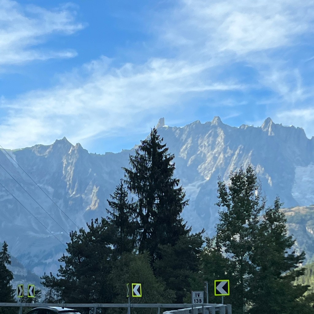Finally, we spotted Mont Blanc – with its head frustratingly in the clouds for much of the day. There is something about the feeling of seeing a mountain of that size in the flesh that is difficult to explain. Of course we’ve both seen postcards or online pictures of it, and both seen it in the distance on various motorway or backroad journeys through the Alps, but there is a unique sensation that occurs when given time to properly sit and study such a feat of nature that is unparalleled. Reminds me of Robin Williams telling Matt Damon that he might know all the facts but he won’t know the smells, the noises, the feelings of being in Paris and seeing the Eiffel Tower.