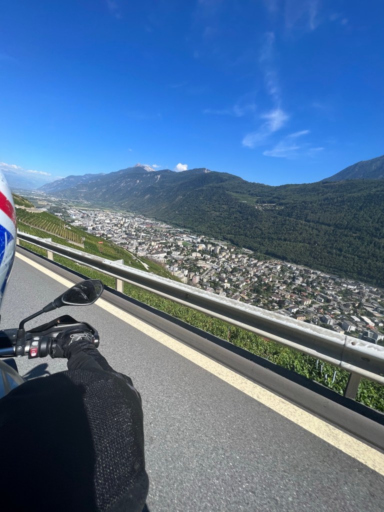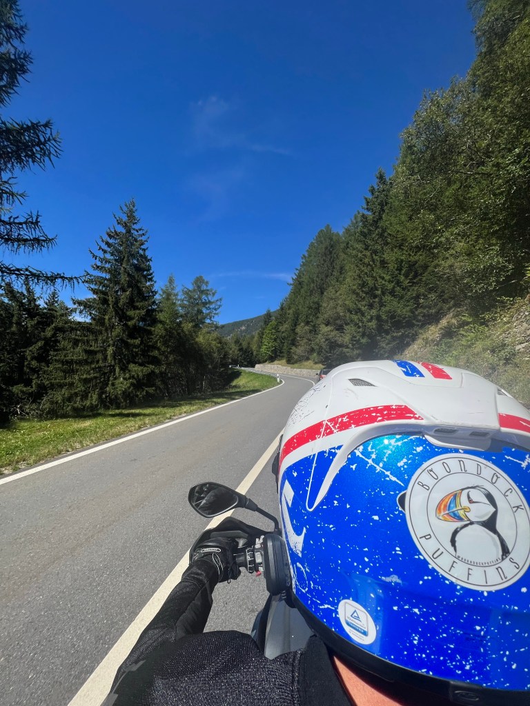 When do you know that your other half is just as crazy as you? For us it is when we make decisions like the following: having already driven 2 hours in our day already (and having been sent by the sat nav up a cycle route that leads you to have to waddle backwards down a very steep hill while balancing 240kg of pure metal muscle and looking for somewhere to turn around), rather than taking the straight 1.5 hour route home, we pick the most circuitous path that Google Maps cheerfully informs us will take 4 and a bit hours and will take us on a brief tour of Switzerland and Italy before helpfully dropping us back over the mountains near home.