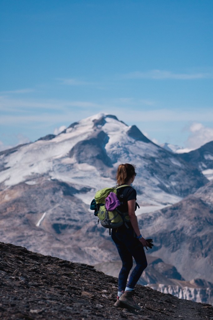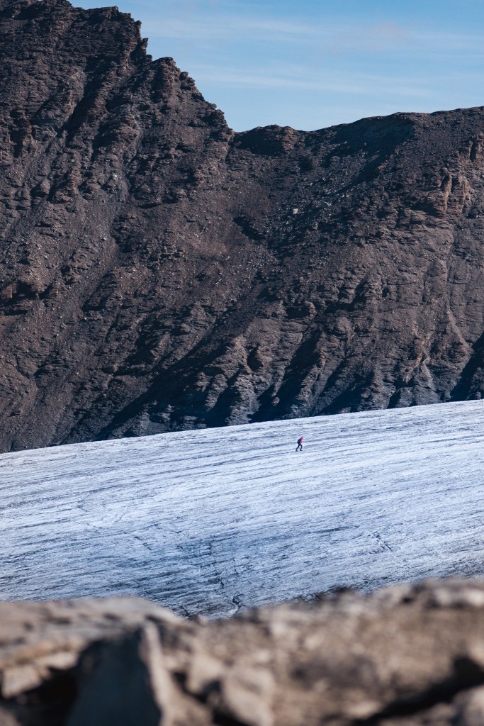 The last scramble up past the glacier was only slightly overshadowed (literally) by some miraculously appearing cloud! We knew that there was a section of the route that we would turn around at as it was marked out as a black route, needing specialist skills and experience. We got half way along the side of the glacier and checked the map as it got a little slippy and scary only to find that we’d already traversed the expert section! Nothing to do but carry on up.
