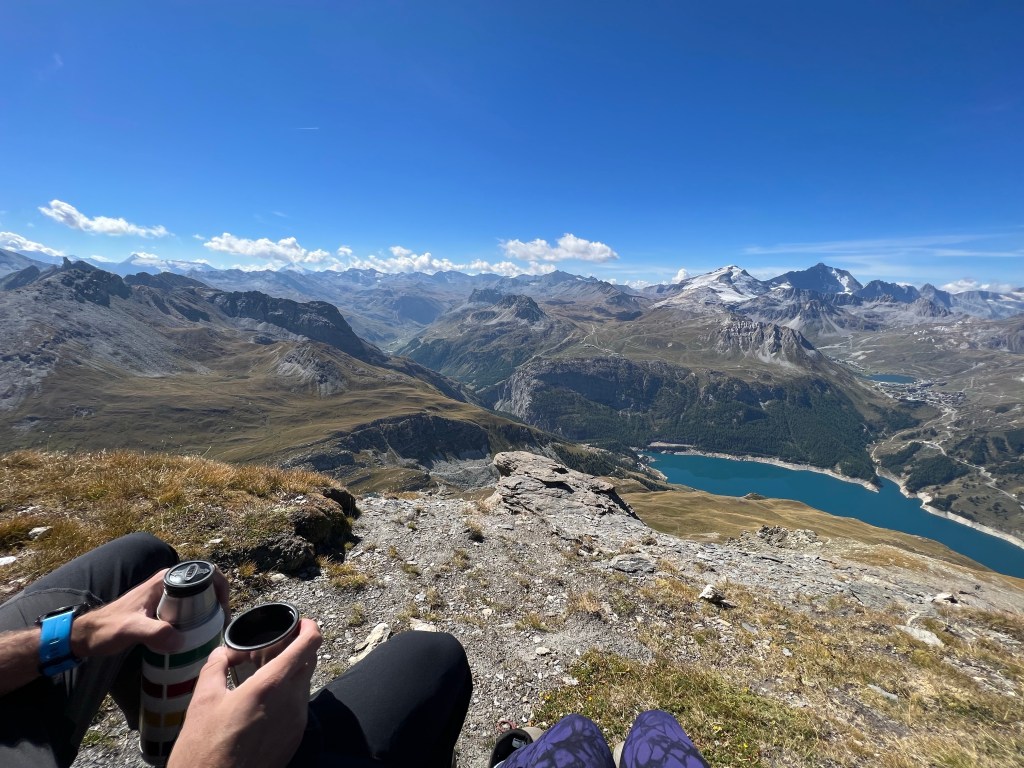 We stopped for coffee under an even more intimidating climb, choosing to focus on the view across at the other mountains rather than at what we had left to face.
