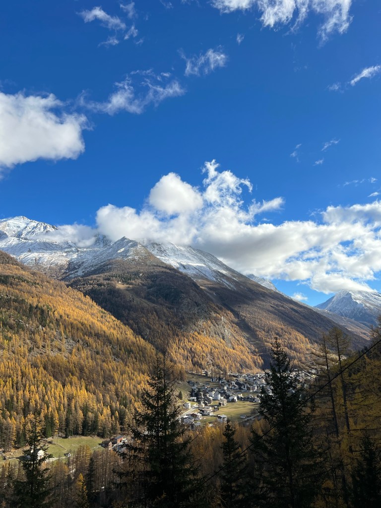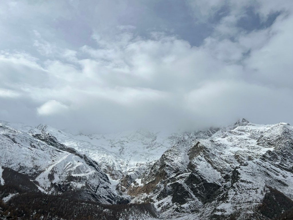 Switzerland in November as part of work is not something we thought we’d ever experience. However, our current circumstances meant that Eliza ended up in a trip to Saas-Grund in Switzerland for a week of explorations of the local countryside, a few trips down the mountain to Visp, and a few trips up to the quaint-ish settlement of Saas-Fee that is dwarfed by the massive peaks surrounding it.