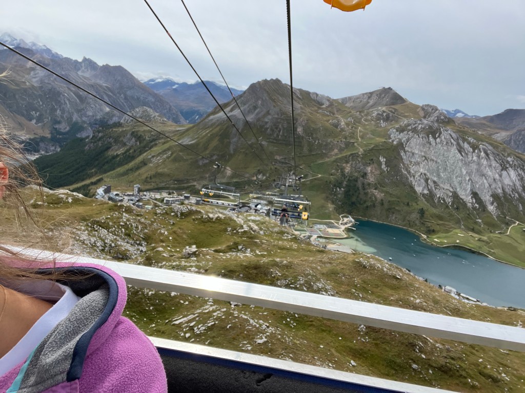 In summer, the bubble lift remains open but we didn’t have a pass and didn’t want to fork out for where we could already hike. But when one of the chair lifts opened, Tom agreed to take a break from his dissertation and we enthusiastically paid for a ticket to go for a ride up and down one edge of the mountain bowl. Unfortunately, Eliza’s French was a tad rusty. In a similar vein, our understand of the temperature changes higher up the mountain was somewhat lacking. As a result, we enthusiastically hopped on the chair lift in and amongst the mountain bikers going up, wearing our shorts and T-shirts, fleece and hot chocolate packed into a tiny rucksack…
