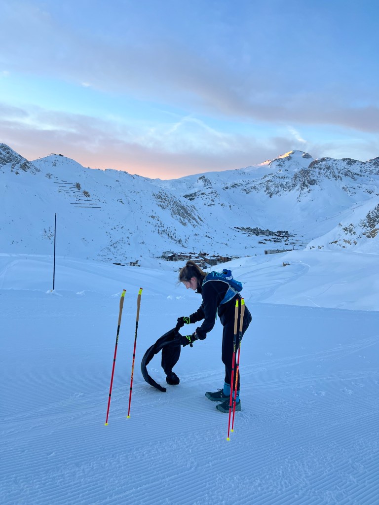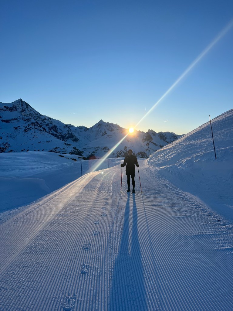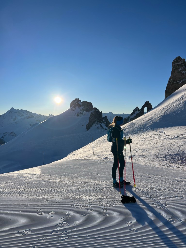 Signing up for a 45km marathon with 2500 meters of ascent while living in an alpine town 2100m up, knowing that you will have to train through the winter months, was possibly not the wisest decision we have ever made. However, it has been one that has forced us to get up and out (and then up again!) on the coldest of days. These runs have treated us to some epic sunrises and sunsets; we have run up and down slopes that are meant for skier, been waved at by piste-bashers and cheered on by snowboarders. Really, there is no better feeling than standing at the top of a ski lift 2 hours before the slopes open, feeling the first sun rays of the day warm up your frozen skin and seeing the town start to wake up several hundred meters below.