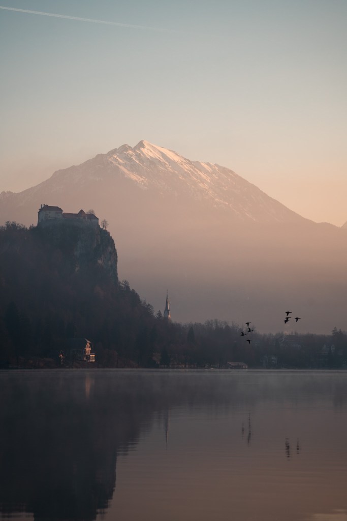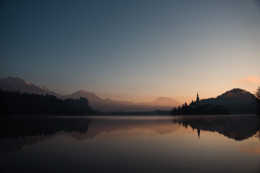 The following forming, we enjoyed a sunrise walk in Bled and were rewarded with some epic views over the water.