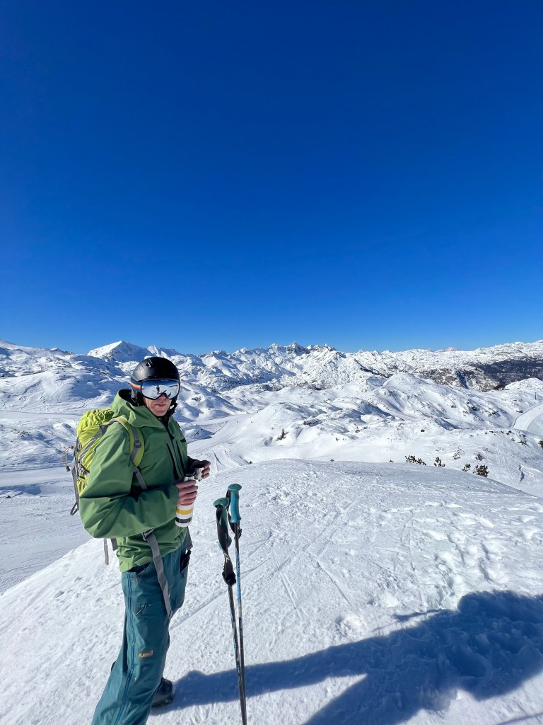 Compared to home, it was also balmy weather, a grand total of 7 degrees! We definitely could have gone in just our fleeces, but didn’t know this at the bottom of the cable car so had a very full backpack of layers. Sadly Run 14, the one run that we could have taken all the way down the mountain, was shut so ultimately we had to take the cable car back down. All the lifts feel fairly old and rickety but it adds a quaint charm to the whole experience!