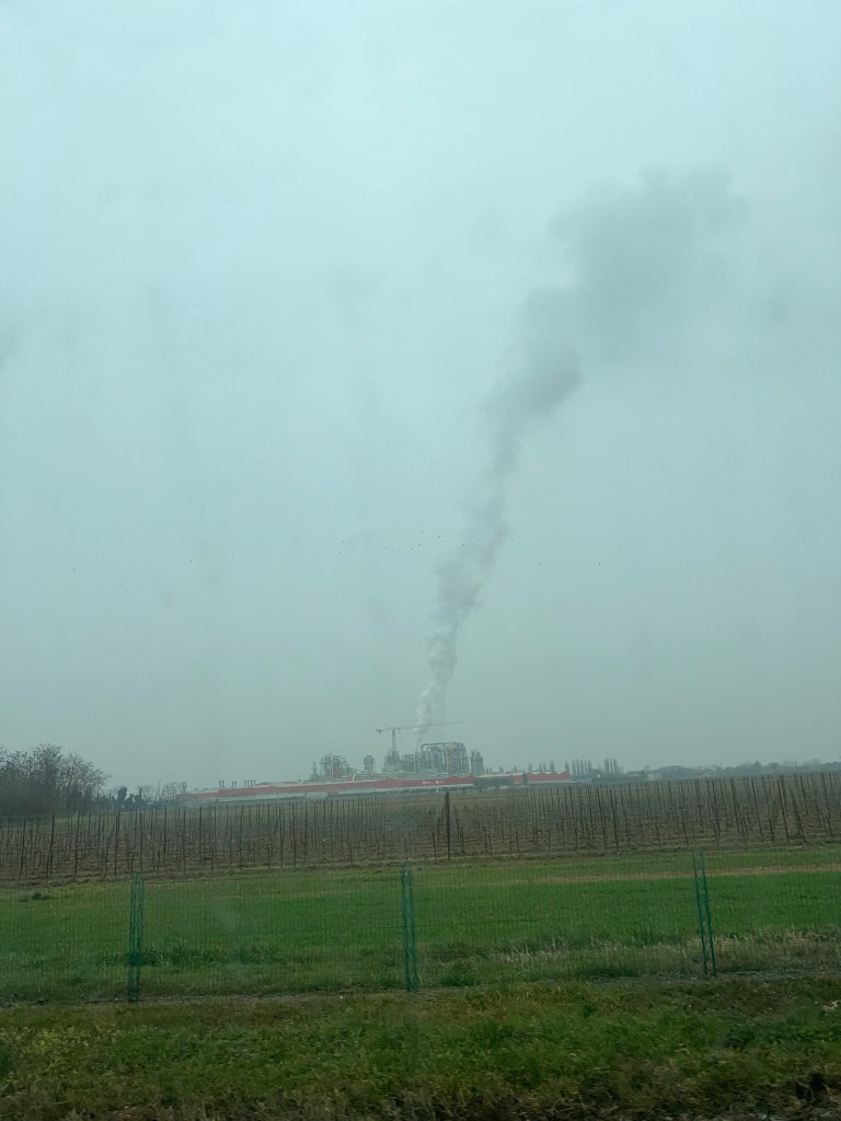 We drove the entire way across the north of Italy, and then back again 3 weeks later. Both ways, once you go through the Frejus tunnel and come out at Bardonecchia, the smog depends and while above you looks somehow still clear, everything around you is in a cloud of gloom. This lasts right up until you enter the mountains again just before Cortina.