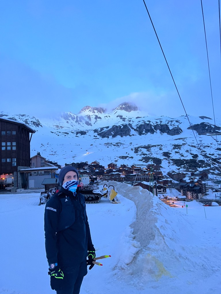 We then ran down a red run (in our one moment of sunshine!) and back up blue to top of Grand Huit lift.