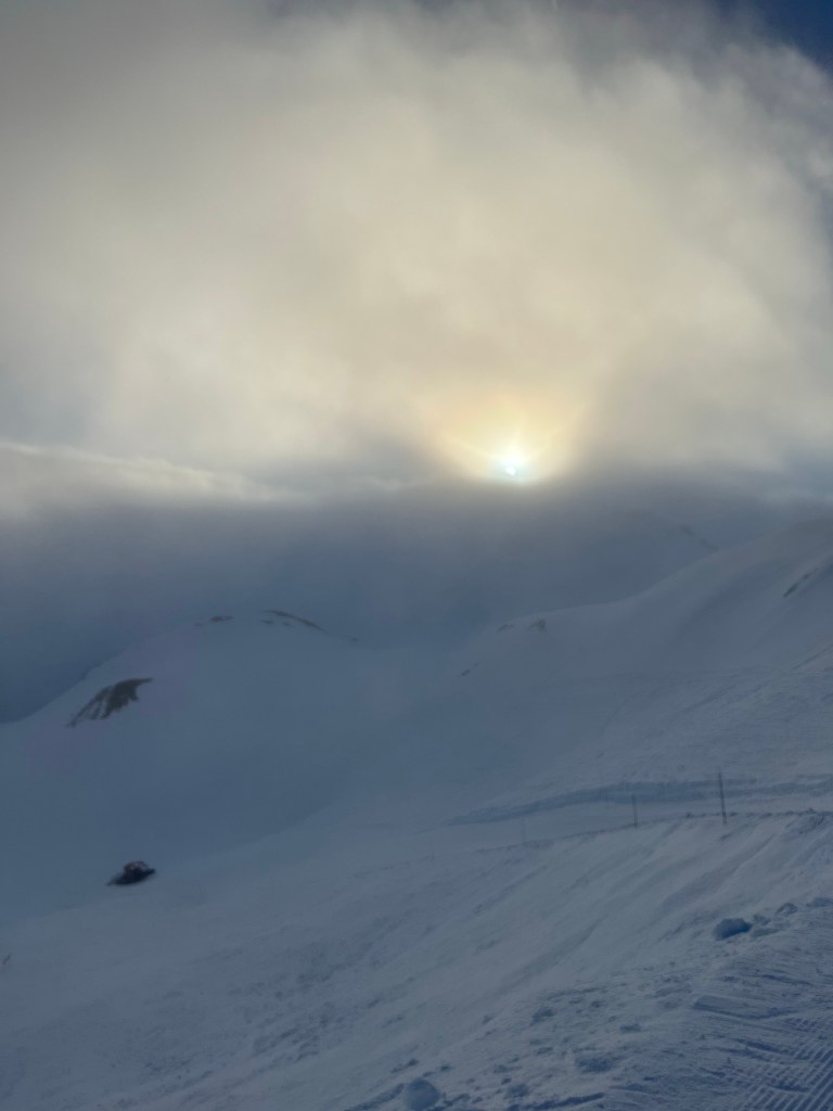 Piste basher came past us out the cloud, quite eerie! For once, we got a wave and cheery smile – unusual.