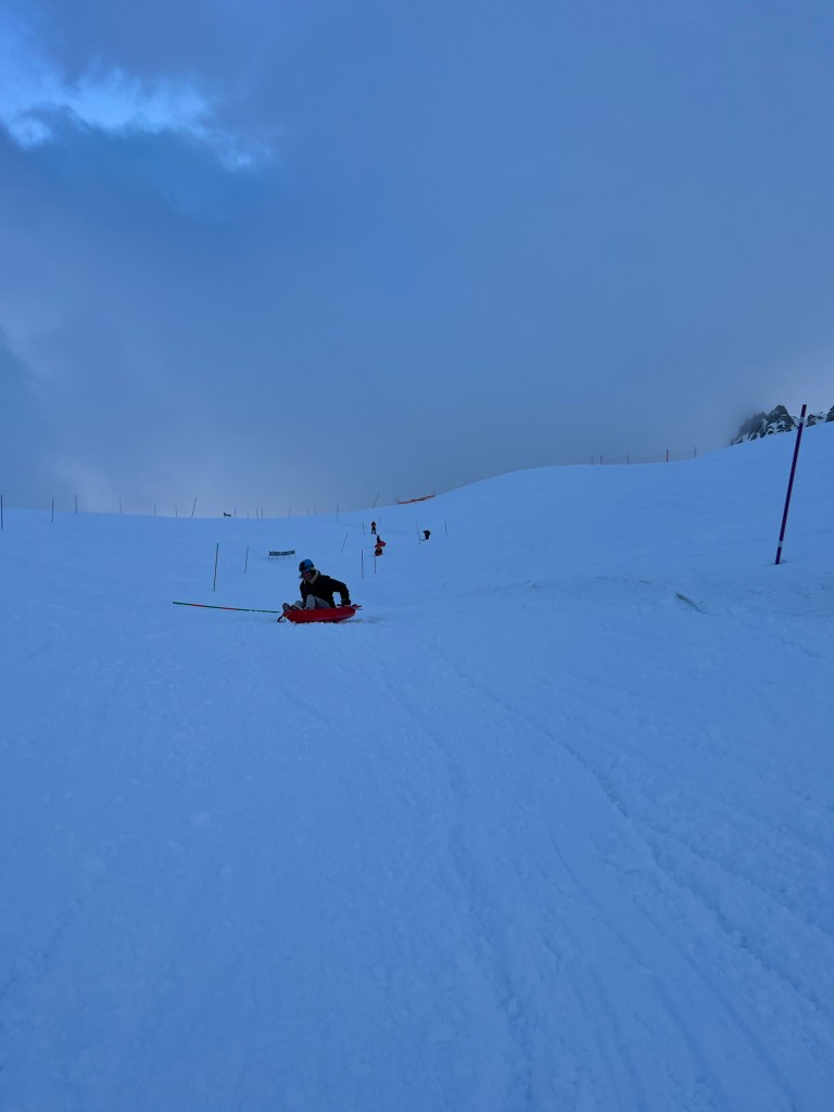 Nevertheless, this did not stop us from embarking on a 3km run down a mountain on a children’s sledge.