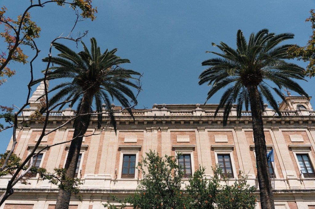 Arriving into Seville, we were greeted by 40°C heat. Martin, our host, had planned to take us around the key things to see in one afternoon, but this plan had to be somewhat unceremoniously abandoned as we were all melting in the humidity and heat. We did however enjoy the museum that houses the archives from trips to India. According to the Seville City Guide website, this museum “contains more than 10 kilometres of bookshelves with documents from the colonial history of ‘Las Indias, or the New World’, from the sixteenth to the nineteenth centuries.” It also states that the building was “originally the trade fair from 1584 for the Consulate of the merchants (Consulado de Mercaderes) for the trade of gold, silver, spices and cocoa between Spain and the ‘New World’.”