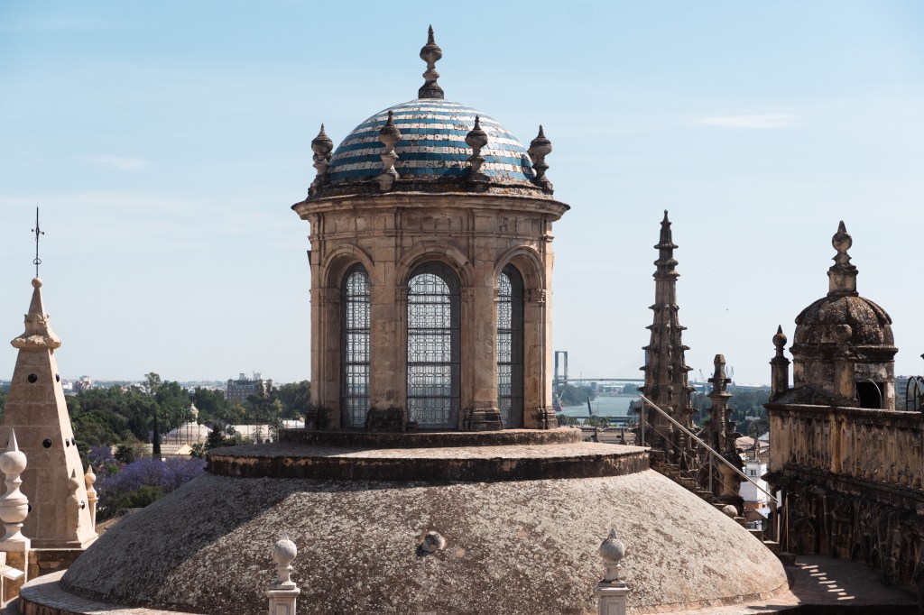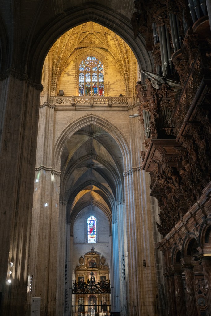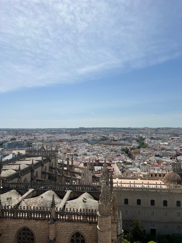 We also encountered the Catedral de Sevilla and had a great time walking up the Torre Geralda. Do you know what’s interesting about this tower? It has a ramp the whole way up. 35 separate ramps apparently. When quizzed about this and why it was, we were able to come up with many suggestions but none of them correct. It is, in actual fact, because with a ramp, you can ride a horse up to the top. There are a few different suggestions as to why this was needed, and from what I can gather, it’s either because the sultan wanted to be able to access a good view very quickly, or it could be so that the the muezzin could ride a horse to the top to recite the call to prayer. Either way, it’s well worth the trip into the cathedral, which is an awe-inspiring construction in and of itself, as well as the slog up the tower to see the views from the top. (Note, if you’re planning on visiting, it’s a good idea to book in advance!)