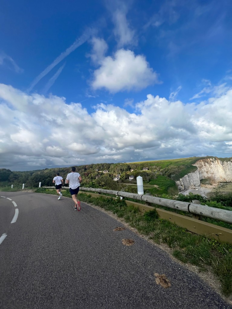 A relaxed evening followed by a run the next morning and we realised it was time to head back up the coast towards home. With more rain forecast, and some tight schedules to return to, we headed back towards Fecamp. Some admin was completed on the way by me in my helmet using the intercom to ring my French bank who had managed to lock me out my account – speaking in French on the phone is already a test of my school level language skills… add to the the background noise and breaks in signal and this was a super painful progress, but eventually I succeeded in reopening the account AND getting the fines returned which is almost unheard of I feel.