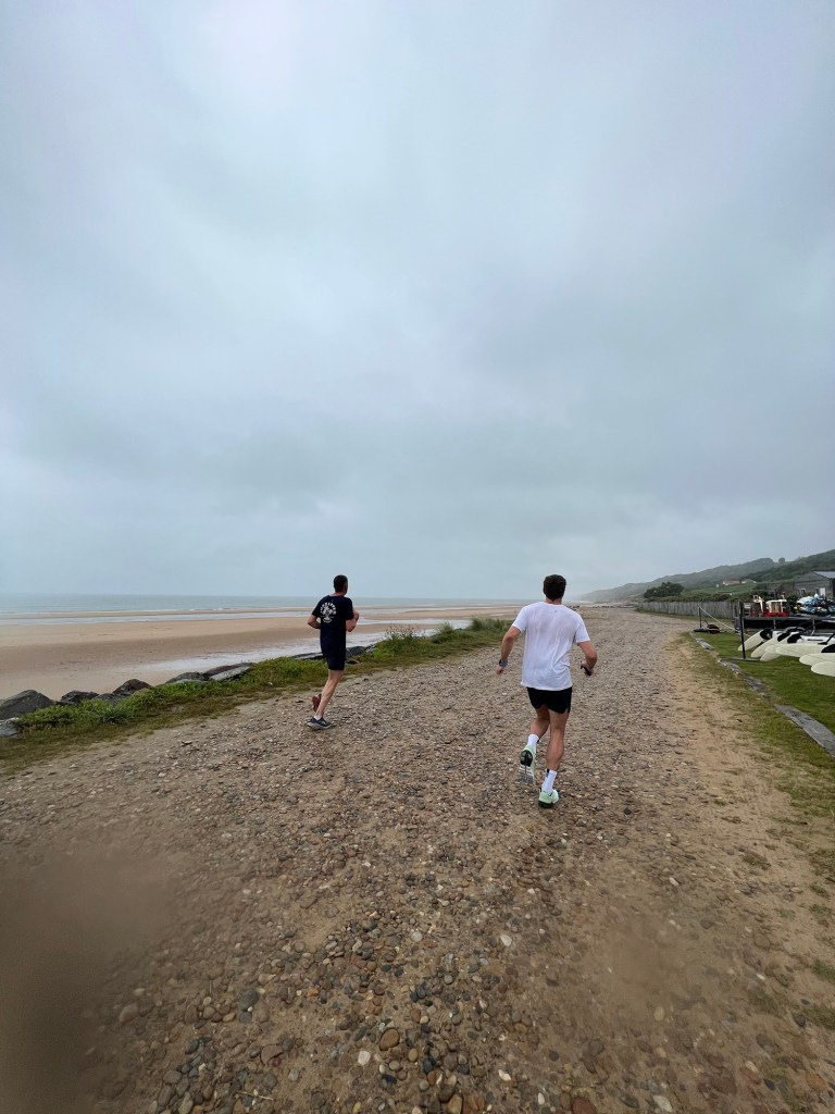 After a night of torrential rain, we enjoyed a brief respite in the drizzle and headed out for a run down to and along the beach (ft. some impressive bushwhacking from John and some history tours from Tom).