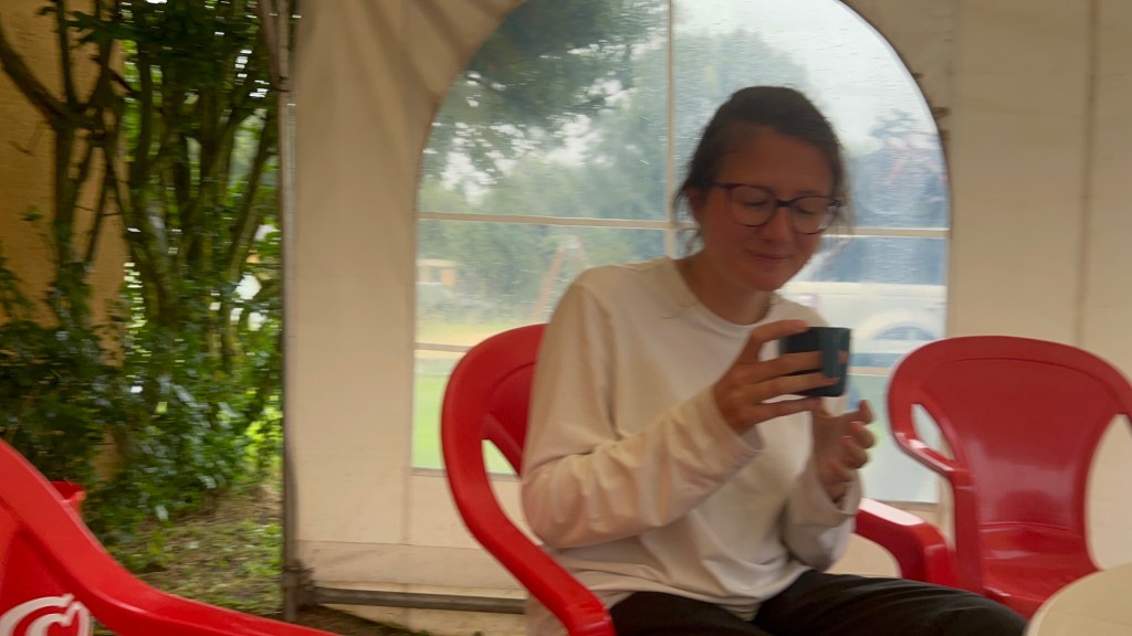 The rest of the day was spent alternating between taking advantage of moments of lighter rain (the downpour really didn’t stop entirely) to have coffee/a chat between tents, and generally sheltering in our tiny tents, snoozing, reading and laughing about how crap the weather was. Who was it who said there’s no such thing as bad weather, just a bad attitude?