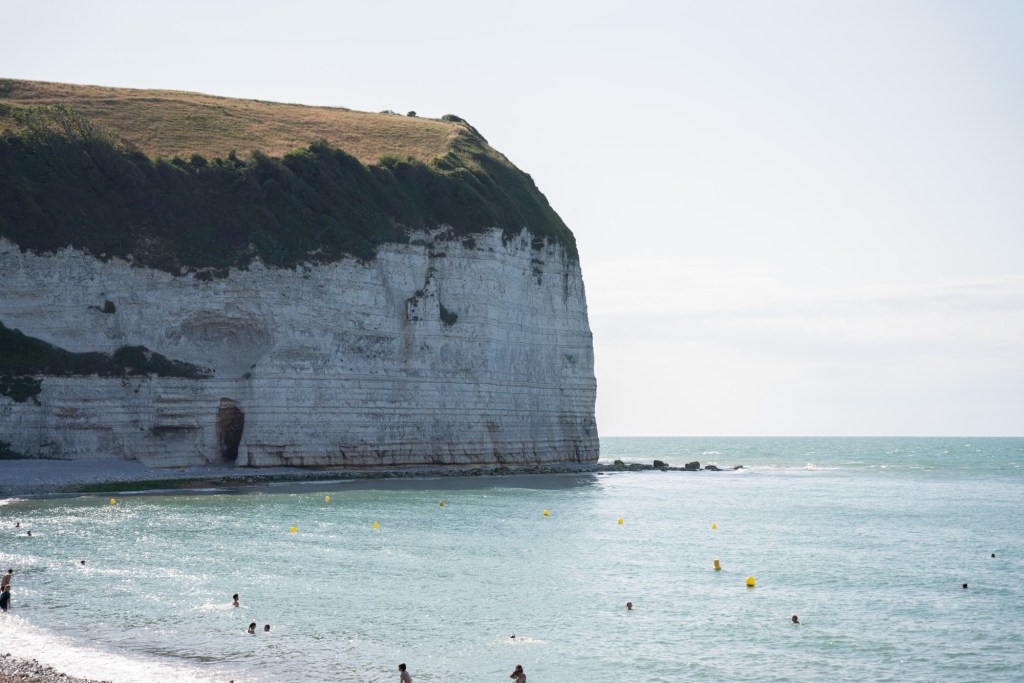 Once there, we headed to a campsite found by John – and an excellent spot it turned out to be! Perched high above the tiny seaside town(? Maybe village is more apt!) of Yport just down the road from Fecamp, it was ideally positioned and we could walk along the headlands (although some care is needed to do this as they are badly eroded in some patches), as well as saunter down to the Plage d’Yport (the beach!).