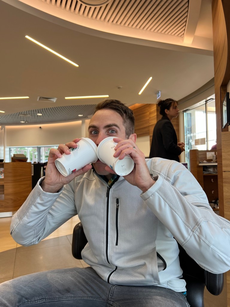 After a very stressful week of getting all our stuff together for the trip, whittling it down to the bare essentials (and then trimming that down again!), moving the entirety of our belongings to Eliza’s family and trying our best to make sure that it’s packaged up to be shipped to the other side of the world when we eventually move, we’re actually on our way.