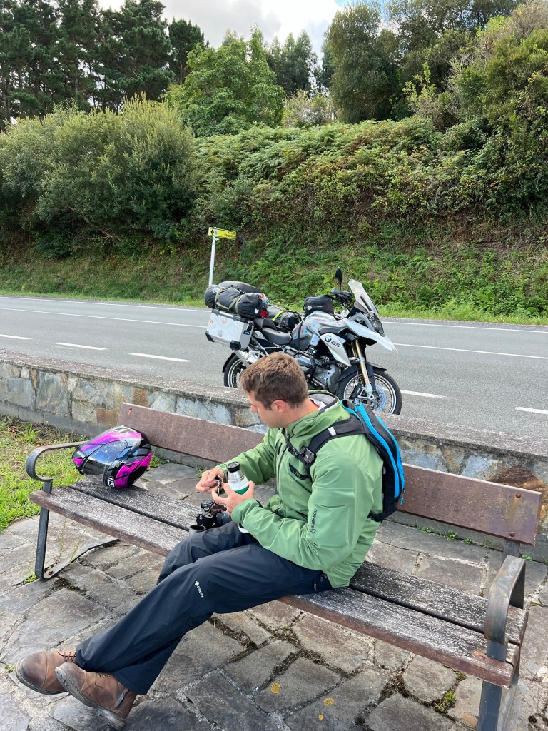 The next morning began with porridge and fudge, our foolproof camping breakfast, and we headed inland. Somewhere past O Barreira, the world became suspiciously quiet. Towns appeared abandoned, roads were eerily empty, and we started to wonder if we’d missed a memo about some sort of mild apocalypse. Is Spain always this silent on a Saturday? Has everyone left? Was there a football match?