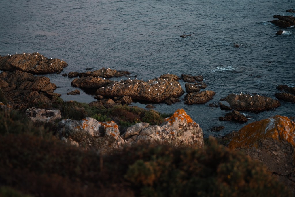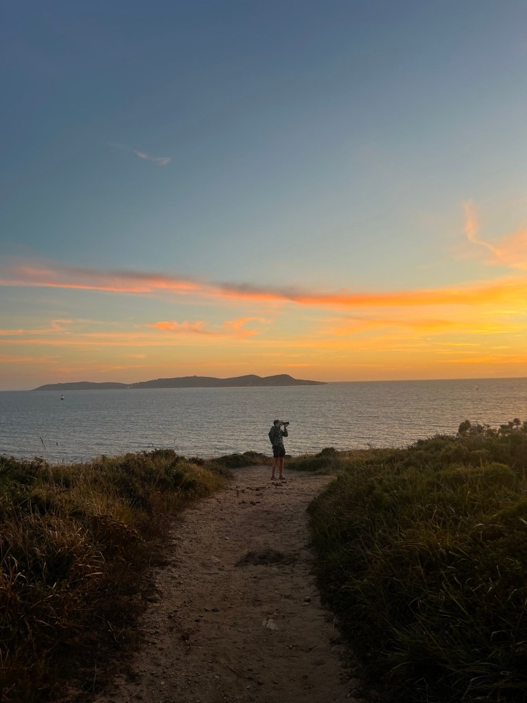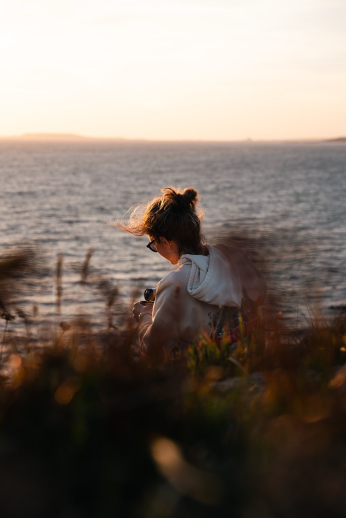 As the sun began to dip, we poured hot chocolate into a flask and wandered out for a sunset stroll along the cliffs. It was one of those moments that feels faintly scripted – cliff edge, golden light, just enough breeze to make your hair interesting but not annoying – and then, just as the stars were beginning to peek through, fireworks erupted from a nearby town.