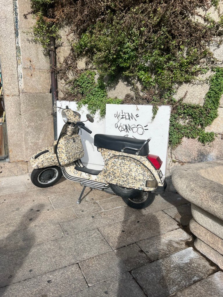 Now, parking in Porto is a sport in itself. We were directed to an underground ramp so steep it could double as a bobsled track. Honestly, it felt like descending into the Batcave—but with fewer gadgets and slightly more sweat. We survived, parked without dropping the bike (a small victory in any city), and headed out on foot to explore.