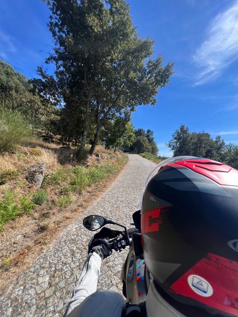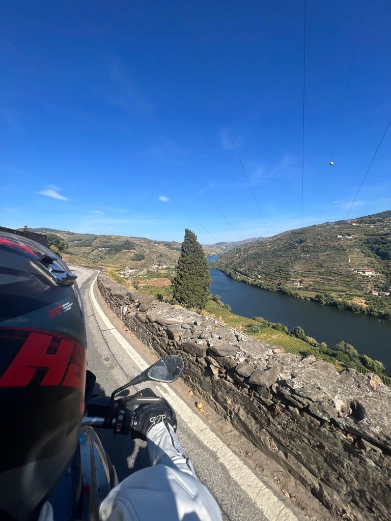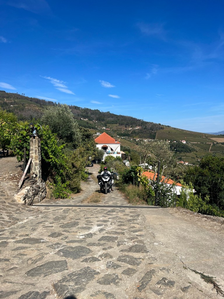 At 1pm, we hit the road toward the Douro Valley and the campsite we’d been quietly romanticising for days. The drive was, in a word, epic. Endless bends. Proper bends. The sort of bends motorcyclists write sonnets about. There were also cobbles, which, while slightly less poetic and slightly more dental, added a certain historic charm. Or spinal realignment, depending on your mood.