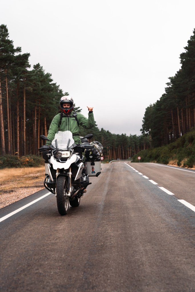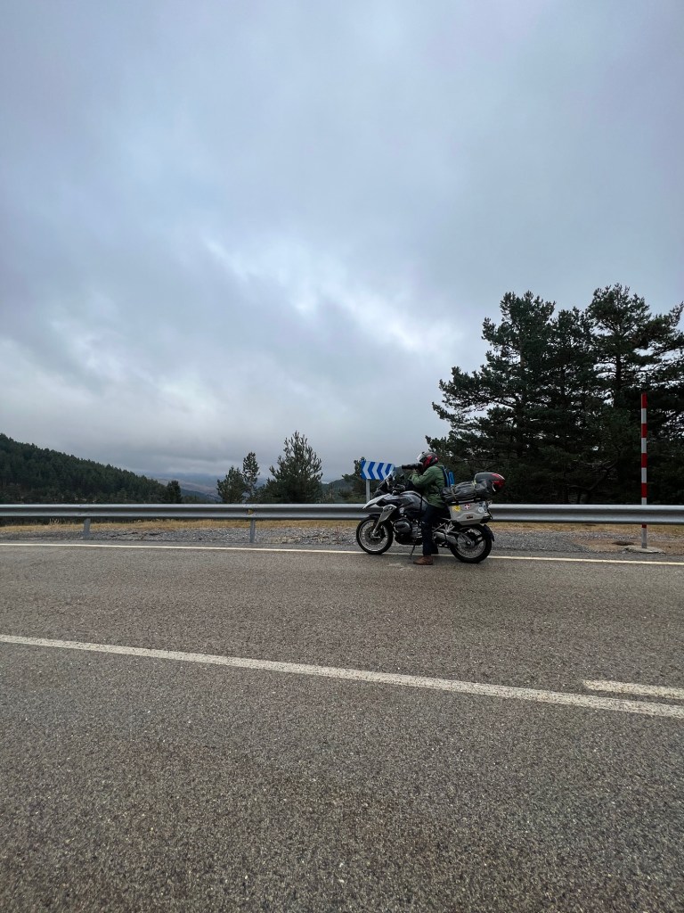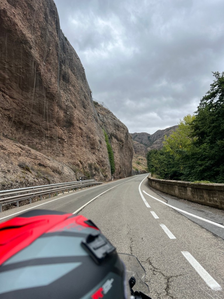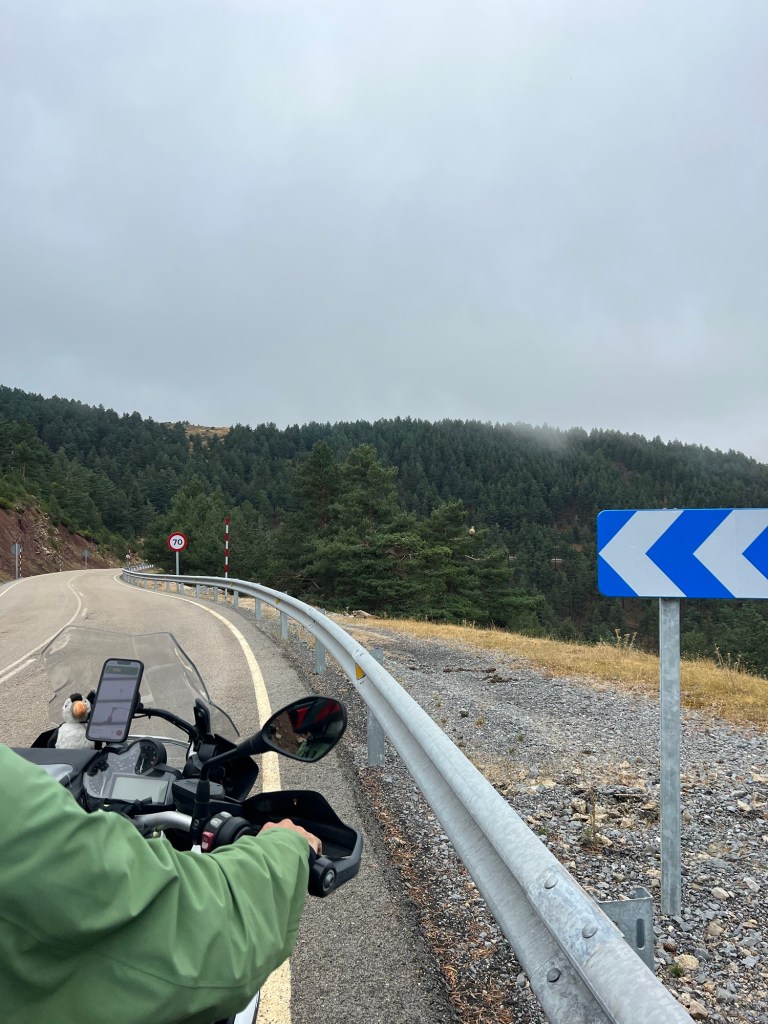 The moment we rolled out, we were greeted by that glorious thing Spain does so well: open roads, pine forests, no traffic, and the odd suicidal cow standing in the middle of the tarmac as if it had read too much Camus. It was the kind of ride that makes motorbiking feel like a spiritual experience, albeit one with a wet backside.